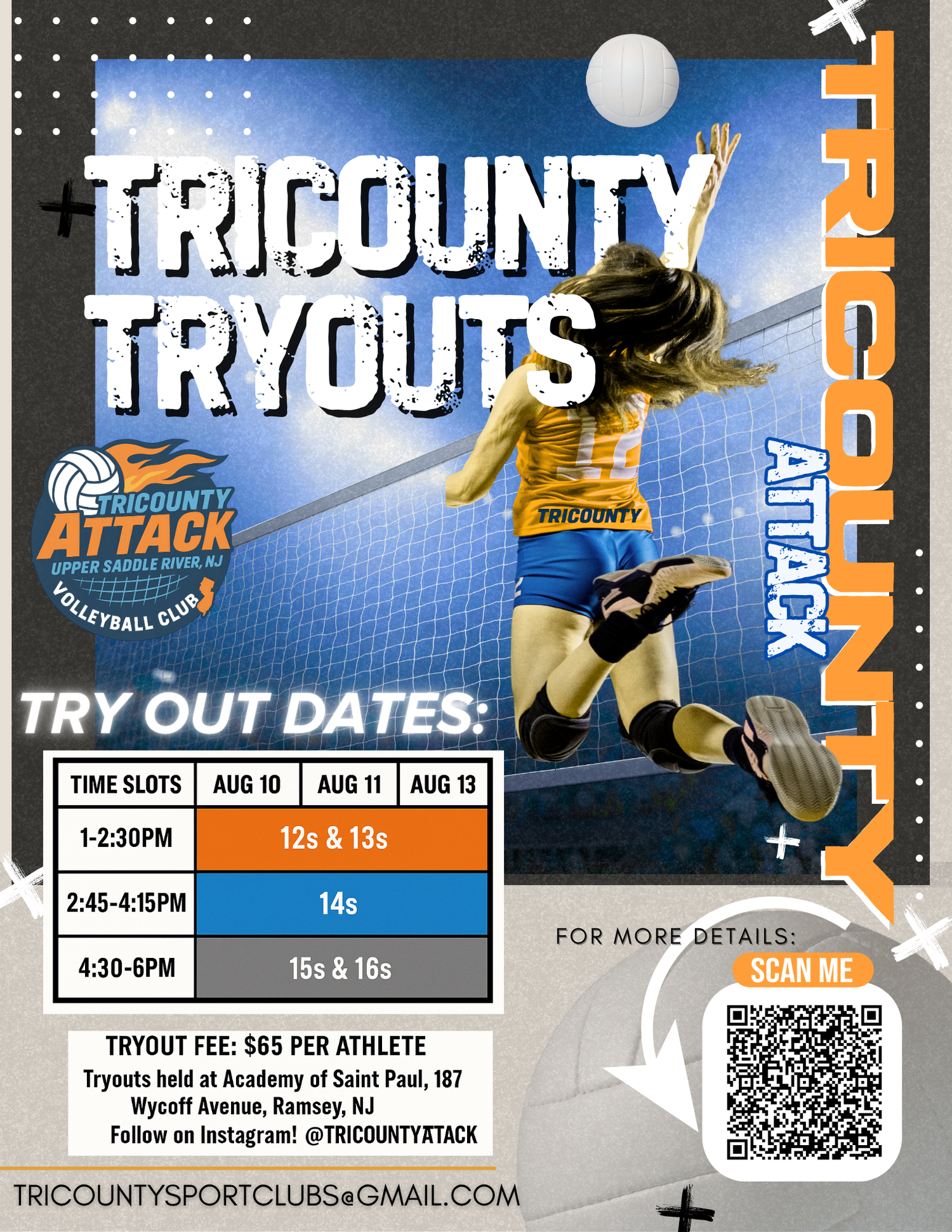 Scan the QR code on the flyer or email us at tricountysportclubs@gmail.com for details. Donβt miss your chance to compete, grow, and be part of the Tri County family!